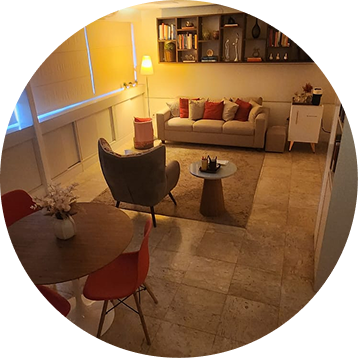• Ambiente Aconchegante: O meu consultório é um espaço pensado para que você se sinta à vontade e, principalmente, acolhid@. Cada detalhe foi cuidadosamente pensado para criar uma atmosfera tranquila e acolhedora.